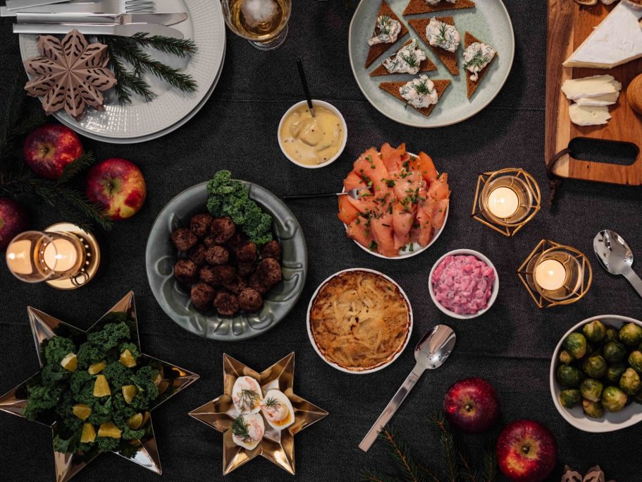 A full Swedish holiday spread crafted from authentic recipes, featuring homemade pastries and breads, a cold table, and a warm table. A truly memorable seasonal experience for your team or guests.